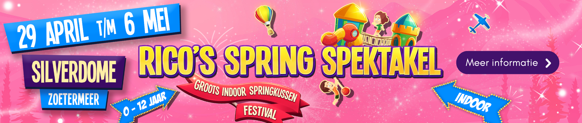 Hét indoor springkussenfestival in Zoetermeer Tijdens de meivakantie verandert de SilverDome in een paradijs voor kinderen. Bij Rico’s Spring Spektakel…